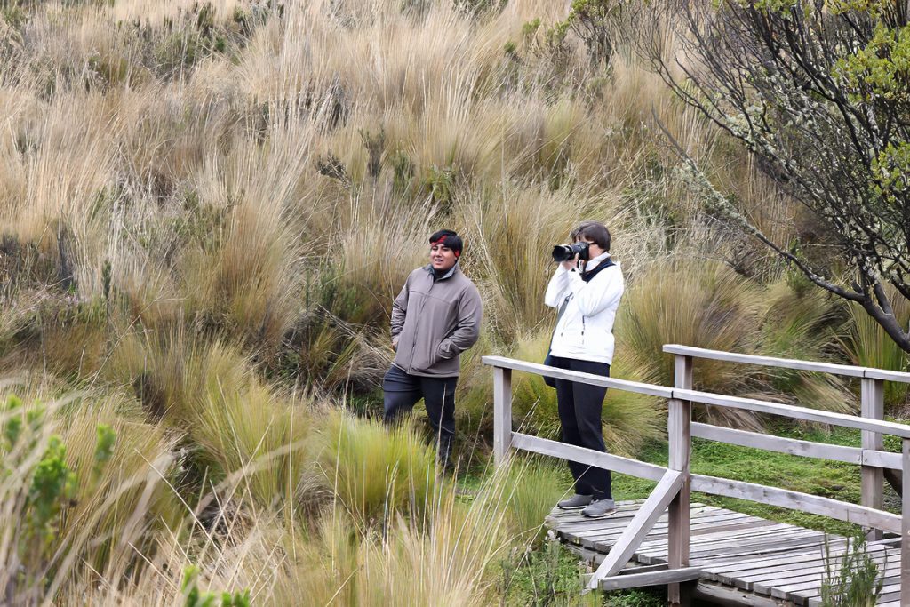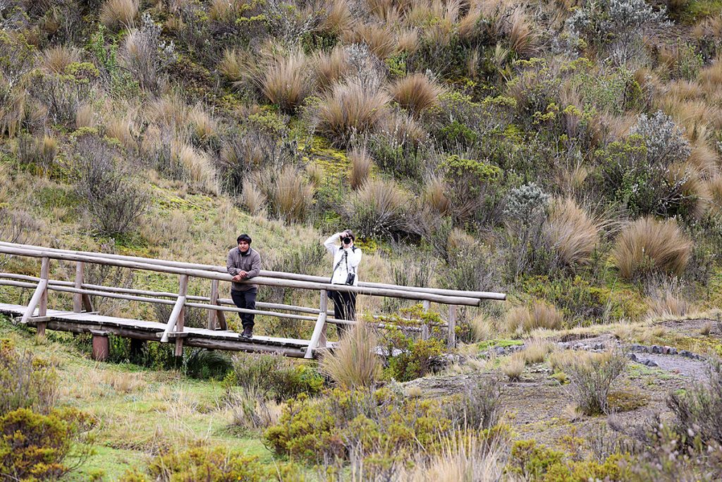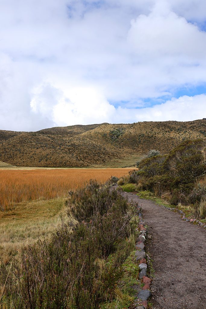Ker smo načrtovali pot pod vulkan Cotopaxi, kar 3.800 m visoko, sem za vsak slučaj vzela s seboj na pot topla oblačila, celo kape in rokavice, ko pa smo prišli do jezera Limpiopungo, ob kateri vodi lepa krožna pot, se je pokazal sonček, celo muhasti Cotopaxi se nam je pokazal izza oblakov.