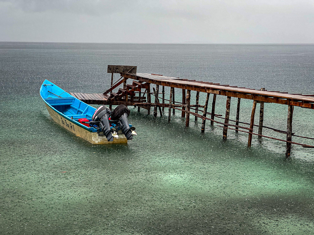 Najprej sva mislila, da se bova naslednji dan, ko se naj bi tam sporostila ena hišica, selila v Indos, a sva si potem premislila, saj sva se svoje kočice kar navadila. Razen tega pa je, ko naj bi se selila, zelo deževalo. Pravi tropski naliv je bil! Morje je bilo čisto mirno, deževalo pa je tako na gosto, da se ni videlo več kot kakših dvajset metrov.