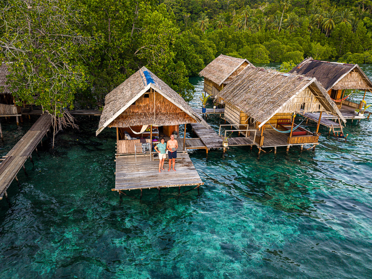 Terimakasih je čudovit homestay na Mansuarju. Koralni greben ob hišicah je zelo lep Že prvo popoldne...
