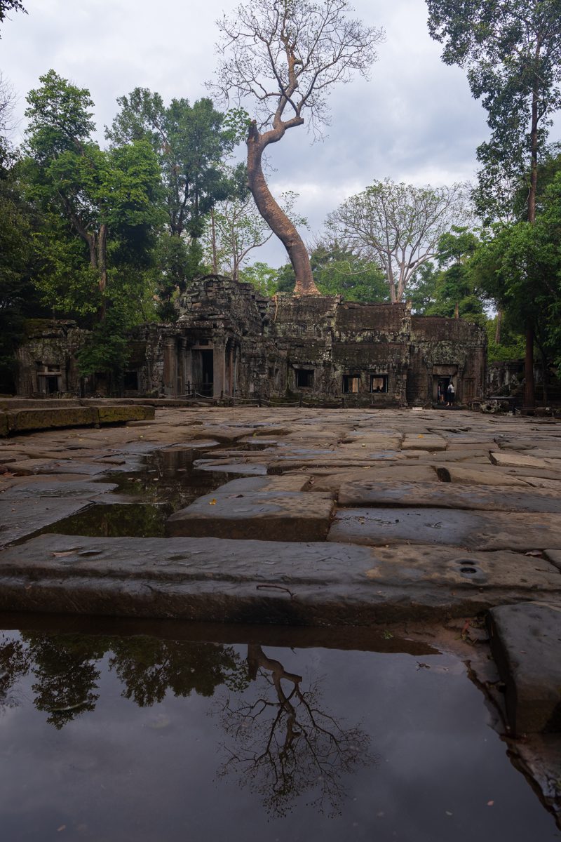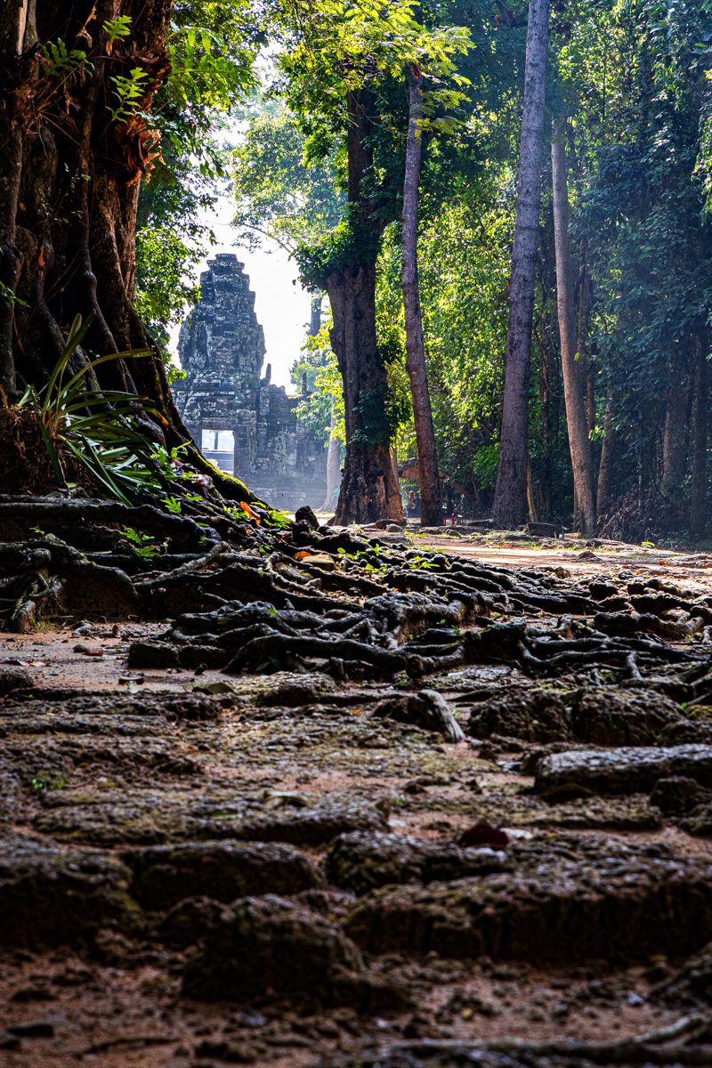 »Imata napolnjene baterije, dovolj prostora na karticah, dovolj vode za pitje, vroče bo…«: naju je Remi opozarjal, ko smo se peljali proti vhodu v območje templjev. Pri nakupu vstopnic ni bilo nobene gneče, čisto sami smo bili, pa dolga vrsta praznih blagajn, ki je pričala o tem, da je obiskovalcev Angkor Wata bistveno manj kot jih je bilo pred pandemijo Corona virusa. Število obiskovalcev je zelo upadlo, nama je pojasnil Remi. No za naju je bila to dobra novica, saj nikjer ni bilo gneče, tudi na najbolj priljubljenih točkah kompleksa ne.