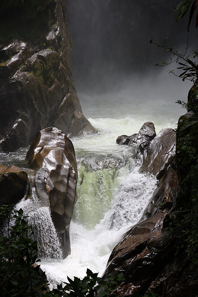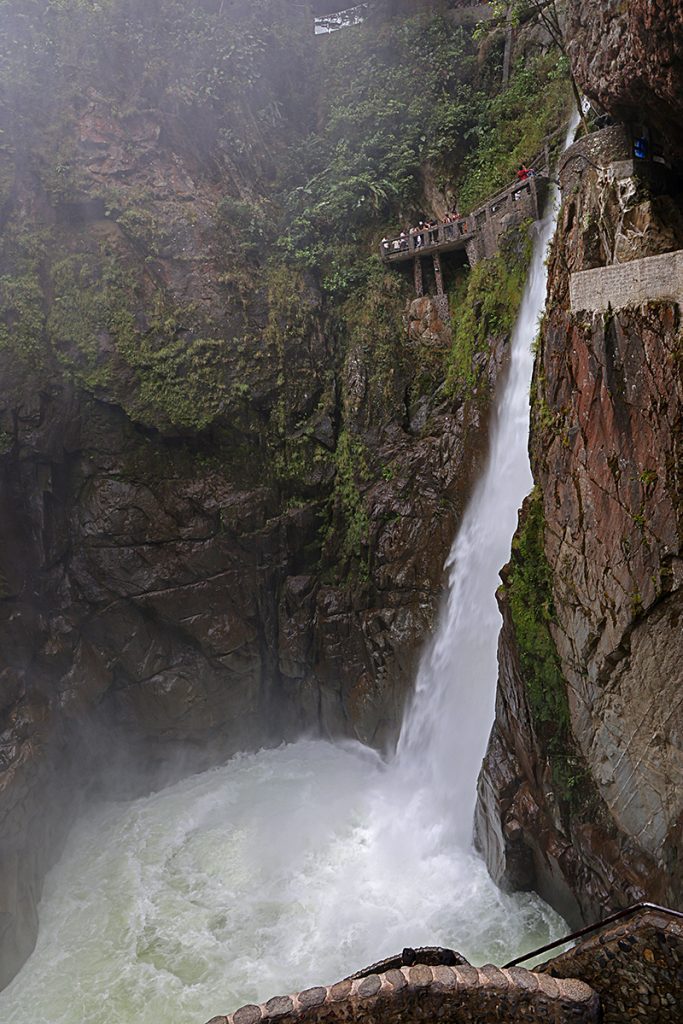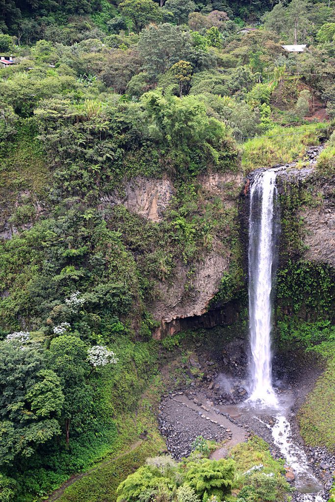 Danes bodo highlight dneva slapovi, je zjutraj, ko smo se vkrcali v avto omenil Aleks. Ob cesti, ki se spušča z Andov proti Amazoniji, se fauna z vsakim metrom spusta začenja opazno spreminjati. Rastje postaja vedno bolj zeleno in gosto, vsepovsod drevesa in tudi kamne prerašča mah. Ža kmalu po tem, ko smo se odpeljali iz Banjosa proti mestecu Puyo, smo se ustavili pri prvem slapu.