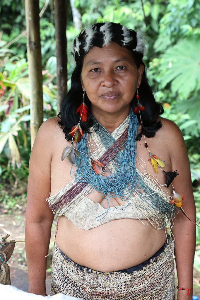 Na poti iz parka smo se ustavili še na stojnici pri avtohtoni prebivalki Amazonije iz etnične skupine Woharani, ki je prodajala izdelke iz semen in vlaken, ki jih nabirajo v gozdu in prodajajo. Tako vesela je bila, da smo se ustavili, da nam je ponudila, če zapoje še eno njihovo pesem in zaplesala je še poseben ples. Ker ni bila namazana okrog oči, se je pred tem še hitro namazala, ko smo omenili, da bi jo želeli fotografirati.