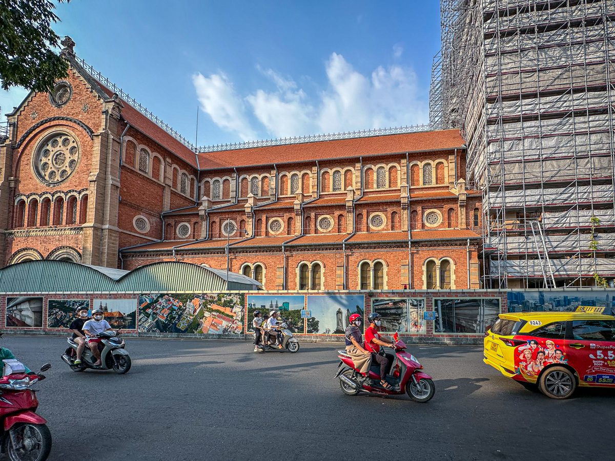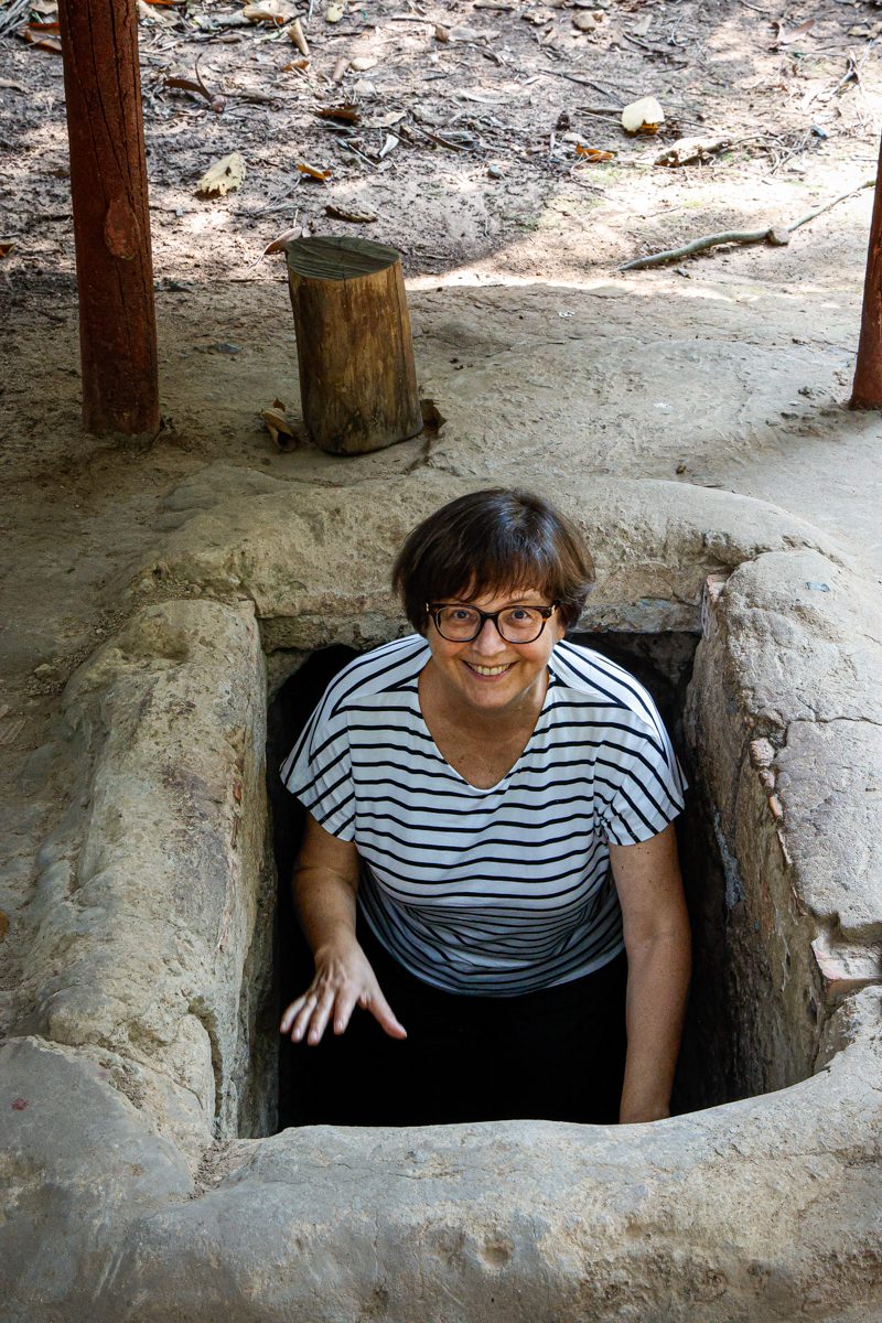 V Ho Chi Minh City, bivši Saigon sva letela z večernim letom iz Da Nanga, ki je le dobre pol ure stran od Hoi Ana. Ko smo zvečer pristali v Ho Chi Minhu, naju je pričakal predstavnik hotela v katerem sva naročila prevoz do hotela in naju obvestil, da prevoz zamuja, da bova morala malo počakati. Naslednji dan je bila v Ho Chi Minh Cityju velika parada za obeležitev 50 letnice združitve Severnega in Južnega Vietnama in v mesto so se zgrinjale nepregledne množice Vietnamcev z vseh delov države. Ko se je najin voznik končno prebil do letališča, sva na poti proti hotelu videla, da je, kljub pozni nočni uri, v mestu res vse stalo. Končno smo le prispeli v hotel in kar padal sva v postelji, saj naju je naslednji dan čakal izlet na območje, kjer so se Vietkongovci borili proti Američanom na čisto poseben način, s premikanjem po rovih, ki so jih izkopali celo v več nivojih. Cu Chi Tunnels so ena glavnih »must see« znamenitosti, če obiščeš Ho Chi Minh City. Seveda tega tudi midva nisva hotela zamuditi in sva že od doma rezervirala voden ogled. Vodička nama je že zvečer sporočila, da zaradi parade z avtom ne bo možen dostop do hotela in nama poslala lokacijo kamor naj prideva peš. Ko sva stopila iz hotela, kar verjeti nisva mogla koliko ljudi je bilo na ulicah, ki so že od zgodnjega jutra čakali, da so dobili prostor za opazovanje parade, ki je bila napovedana za popolne. Celo peš sva se težko prebijala med ljudmi, ki so sedeli na tleh in čakali. Večina je nosila rdeče majice z rumeno peterokrako zvezdo.